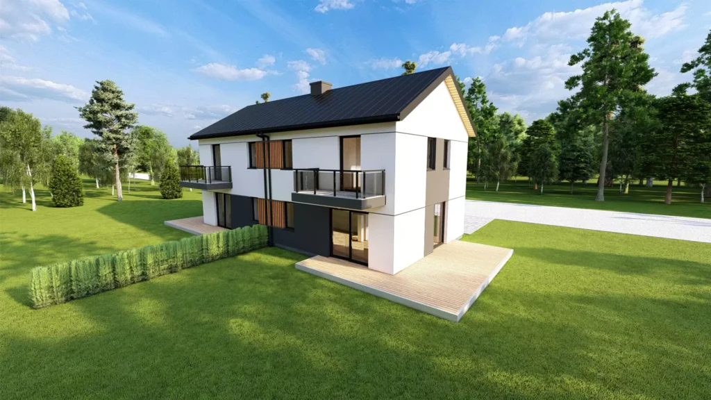 Osiedle Pokątna to kameralny kompleks 36 domów w zabudowie bliźniaczej, zaprojektowanych z myślą o komforcie i estetyce codziennego życia.